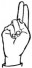 На ћирилици написано АНТОНИНА ПОСТОЛОВИЋ састоји се из 18 слова [?]. Исписано ћириличном једноручном азбуком за глувонеме: